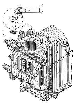 A gear-frame or casting which connects the outside edges of the firebox sheet, and which has bearings for the axle and counter-shaft, and a seat upon which the bed of the engine is supported. |