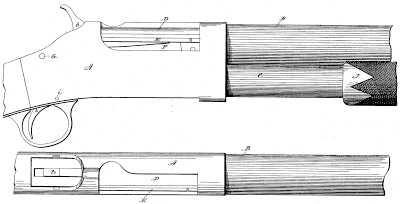 | The invention is a greatly improved pump-action shotgun. Loading and ejection are from the under-side of the breech which kept the ejected shells out of the line of sight of the shooter. The mechanism allowed the shooter to hold down the trigger and fire automatically as the ejection mechanism was cycled.This invention was produced as the Winchester Model 1887, and then as the Model 1897 which was designed to accommodate the new and more powerful smokeless gunpowder. The 1897, which was in production for over 60 years, remains one of the most popular shotguns ever made. |