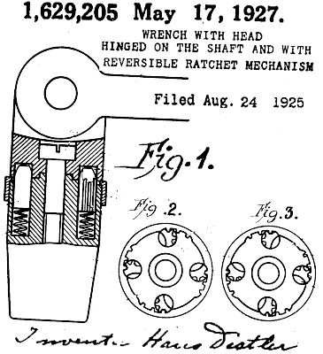 One form of resulting wrench was distributed in the U.S. by the Emil Schwarz Co. (Chicago) as the driver for a 5/8" hex drive "ALL-In-ONE" ratchet and socket set. These were manufactured in Germany and imported. The ESPACENET entry for the patent lists corresponding patents from several European countries -- DE-425,020 is the German patent, and GB-244,712 the British patent.