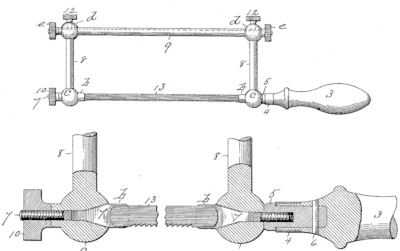 Inventor L. L. Davis manufactured saws and planes but we have not found evidence thaat his patent hacksaws were manufactured. See also his patent 492,937.