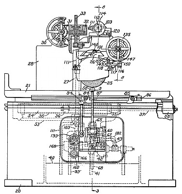 US Patent: 2,022,542 https://www.datamp.org/patents/displayPatent.php?id=83818&pn=2,022,542 Hydraulically Operated Grinding Machine Patentees: Carl G. Flygare - Worcester, Worcester County MA , Wallace H. Wood - Worcester, Worcester County MA Granted:1935-11-26