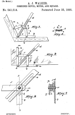 US Patent: 541,514 https://www.datamp.org/patents/displayPatent.php?id=85524&pn=541,514 Combined Bevel, Miter, and Square Patentee: Arthur John Walker - Newark NJ Granted:1895-06-25