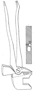 | The pincer jaws are designed to be used as a nail puller. The hole through the center line is to facilitate the nail-puller function. The handle ends are a screwdriver and tack claw. The end of one jaw section is shaped as an open-end wrench. |