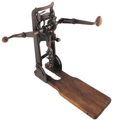 | This invention was the subject of an article by the late George Little in the May 1994 issue of the Western New York Antique Tool Collectors Association newsletter. That article provided the information on the manufacturer, which is that the machine was manufactured by the Atwood Machine Company and sold by the Wells Mfg. Company. The article conjectures that the manufactured boring machine, which differs in some respects from the patent drawings, was improved by John Atwood of Atwood Machine Co. The article concludes by noting that "Seldom are machines found with a readable original label on them." |