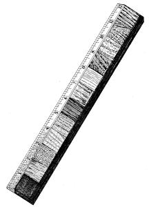 Rule with 12 types of wood inset. Patent term is 14 years.