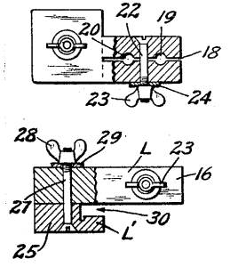 | This is a simple clamp that holds a marking point. It can be attached to any handy straight edge, such as a ruler, yardstick, or even a tape measure. |