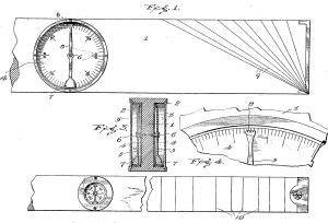 Patent is for angle ruled lines on the stock act as a check for the dial indicator and vise versa.