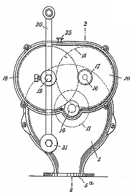 A blower for use in connection with smith’s forges and the like comprising a two part casing having the pear shaped contour hereinbefore referred to, one part or half of the said casing having therein an eccentrically disposed air inlet opening, a rotor mounted on a spindle co-axial with the said eccentrically disposed air inlet opening and motion transmission gearing arranged in a casing connected to the rotor casing said gearing comprising a train of toothed wheels mounted and meshing. |