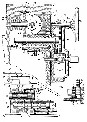 In a machine of the character described the combination with a pair of relatively translatable parts of power means for imparting such relative movement, auxiliary manually actuatable means for imparting such movement having an independent connection with the parts and automatic means for selectively determining the availability of said shifting mechanisms.