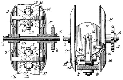In a device for changing speed, two parallel, rotatable wheels or disks, a friction-roller supported between and arranged to engage both said disks to transmit motion from one to the other, and means for adjusting the plane of rotation of said friction-roller angularly to its normal tangent position at its point of contact to cause said roller to traverse said wheels or disks in opposite directions toward or from their centers.