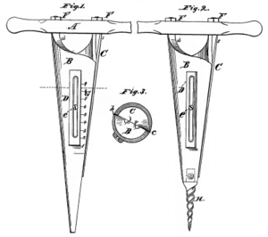 | The reamer is made of two half-cones, each having a cutting/reaming edge. Croacher shows two versions - a longer one without an auger tip, the shorter version accommodating one. |