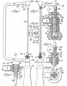 | The primary claim of this patent has to do with a fairly complicated draw bolt, nut, and winged key arrangement which allows the back frame to rotate freely relative to the blade and handle when tightened in one position; then locking the blade rigidly in place when tightened in another position. |