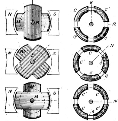 | The primary focus of this important patent is on two-phase electric motors (the use of the term "phase" post-dates this patent; the patent specification describes "coils" and "circuits" rather than "phases"). However, almost as an aside Tesla shows a motor arranged for three evenly-spaced phases (Figures 13 and 14 in the patent drawings). Tesla failed to realize two key advantages of the three phase version. First, the instantaneous power level fluctuated much less in the three-phase system than in the two-phase system. Second, it was possible to interconnect the three-phase coils in either delta or wye configurations which reduced the number of switches and wires. A three-phase motor ran so smoothly that there was no significant advantage to using more phases than that. And reducing the number of wires from four in two-phase to three in three-phase was of cardinal importance when using three phase to carry electrical power on transmission lines. This patent (and the related patent 382,279, 382,281 and 382,282) implies that Tesla was not yet thinking about issues related to long distance power transmission. Michael von Dolivo-Dobrowolsky would get their first; see, for example, patent 455,683.One key reason why Dolivo-Dobrowolsky has largely been forgotten in favor of Tesla is that in 1896 Tesla sold all the rights to his polyphase motors to Westinghouse, who cross-licensed them to General Electric. Together, Westinghouse and GE had a near-monopoly on polyphase motors and generators. Meanwhile, Tesla had become a cultural icon in somewhat the same way that Edison had and that Einstein would become a few decades later, and Westinghouse and GE both found it advantageous to promote their association with Tesla, which led to the down-playing of the role played by Dolivo-Dobrowolsky. Another side-effect of the Tesla/Dolivo-Dobrowolsky schism is that Tesla favored 60 Hertz systems which became the choice in North America, whereas Dolivo-Dobrowolsky favored 50 Hertz systems which became the choice in Europe where Dolivo-Dobrowolsky's employer, AEG, was the dominant supplier of electrical systems.Tesla undoubtedly deserves most of the credit for inventing three-phase induction motors and generators as seen in this patent as well as patents 382,279 and 382,281. However, Dolivo-Dobrowolsky deserves the primary credit for inventing the three-wire three-phase electrical distribution system (patent 422,746) and the squirrel-cage motor design (patent 456,804). |