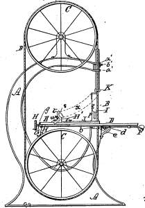 "My present invention consists in several improvements in stair-rail-sawing machines operating generally on the plan set forth in Letters Patent No. 155,854, granted to me on the 13th day of October, 1874."