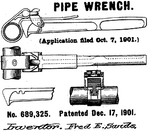 | A strap wrench for non-marring applications like brass pipe. Compare Sands' earlier patents 667,852 and 667,853 which were proposed "improvements" to 627,075. |