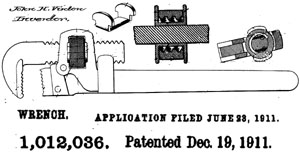 Patent no. 1,430,955 is a later refinement of the nut guard, and shows a frame style that was in use for TRIMO nut wrenches as early as 1912. |
