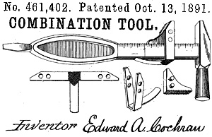 | The tool combines screwdriver, hammer, riveting-hammer, and adjustable wrench. The movable wrench jaw is held in engagement with the shank by a spring, and teeth on the jaw that grip teeth on the shank.