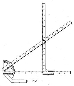 This invention relates to an instrument useful in describing and measuring angles and any of their branches, as will be apparent to persons skilled in the art. It comprises certain novel features of construction and arrangement of parts, as will be hereinafter specified. Reference is to be had to the accompanying drawing, forming apart of this invention, in which the figure represents a side view of the invention. |