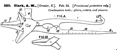 | Combination tool corresponding to U.S. patent 95,793. As noted in that entry, an unmarked known example includes a corkscrew and saw blade.