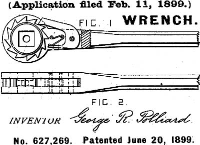 The patent focuses on the mode of construction of the ratchet wrench and the "U" shaped pawl with internal spring.