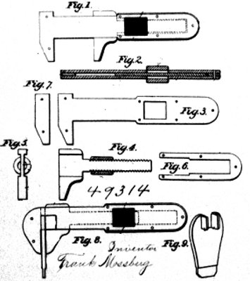 The design represents the 1st state of the Mossberg Wrench Co. No. C pocket wrench. |