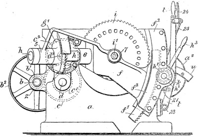 | Improvements to patent 864,424 by slowing down the gravity-return stock-feeding mechanism. This patent date is recorded on a saw in the collection of the Yakima Valley Transportation Co.: "Cut Off Saw, belt driven; Higley Machine Co., patent November 5, 1907". |