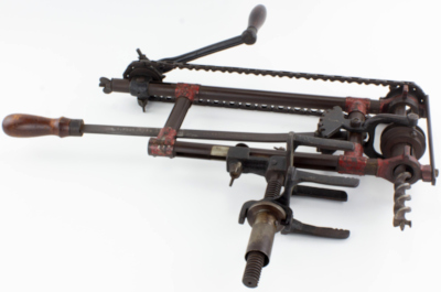 | This device was sold as the "McClellan Little Giant Joist Tool", "manufactured by Stephen McClellan, 1179 Herkimer street, Brooklyn, N.Y.", according to the 1902-11-24 issue of the Iron Age which had an illustrated article on this invention (volume 74 page 78). |
