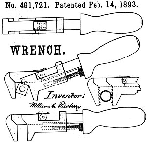 | The end of the "fixed" jaw is hinged, and held in line by a spring. This allows for "ratchet" action on nut, or gripping and releasing action on pipe when the jaw faces have teeth.
